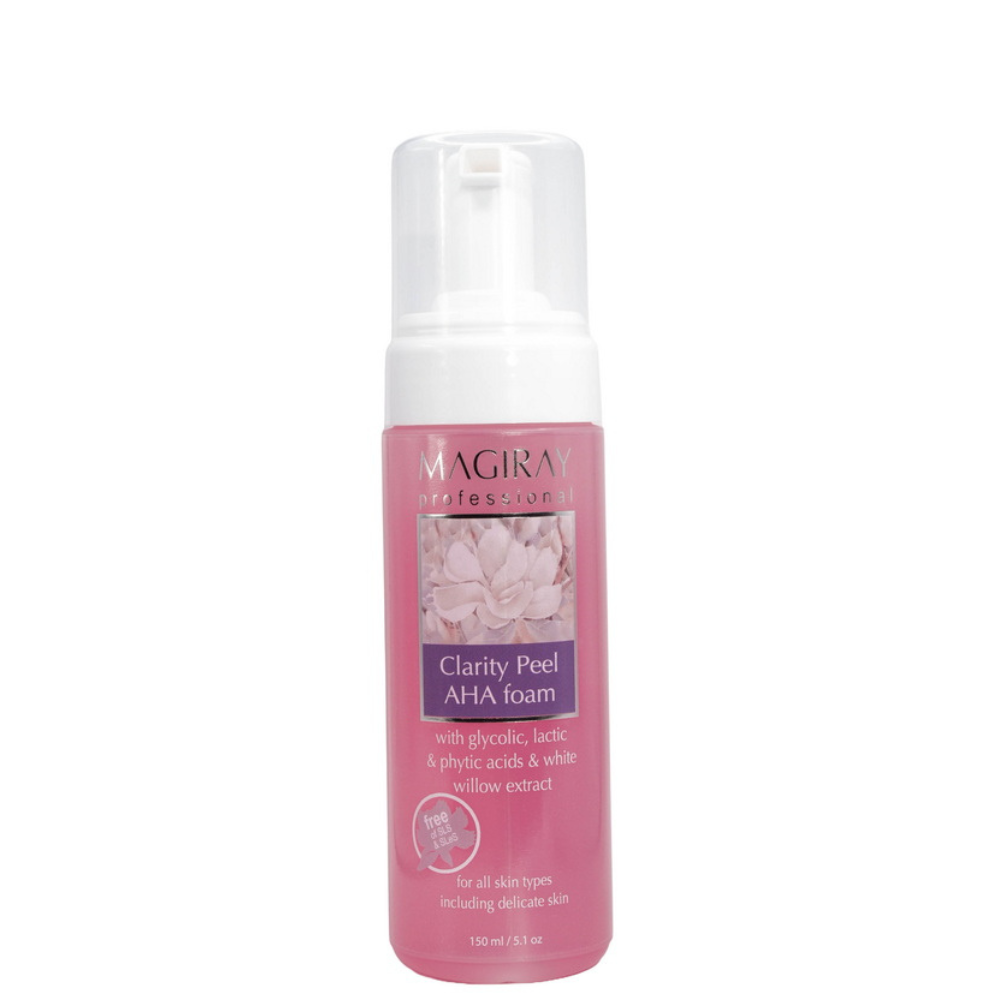 Clarity Peel AHA to lekka pianka złuszczająca z kwasami glikolowym, fitowym i mlekowym. Delikatnie usuwa martwe komórki naskórka, rozjaśnia cerę, wygładza i poprawia jej elastyczność, przywracając świeżość i zdrowy blask.